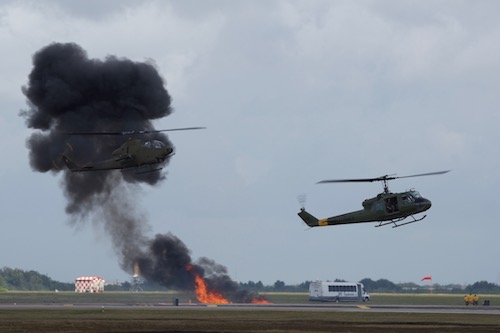 They could have gone for a more authentic look and had the door-gunners shoot up the cars to chase away any lurking hostiles. A parking lot full of burning, bullet-riddled cars would have added to the ambiance greatly. They could even charge the cars' owners an extra fee for the special custom auto-detailing job!